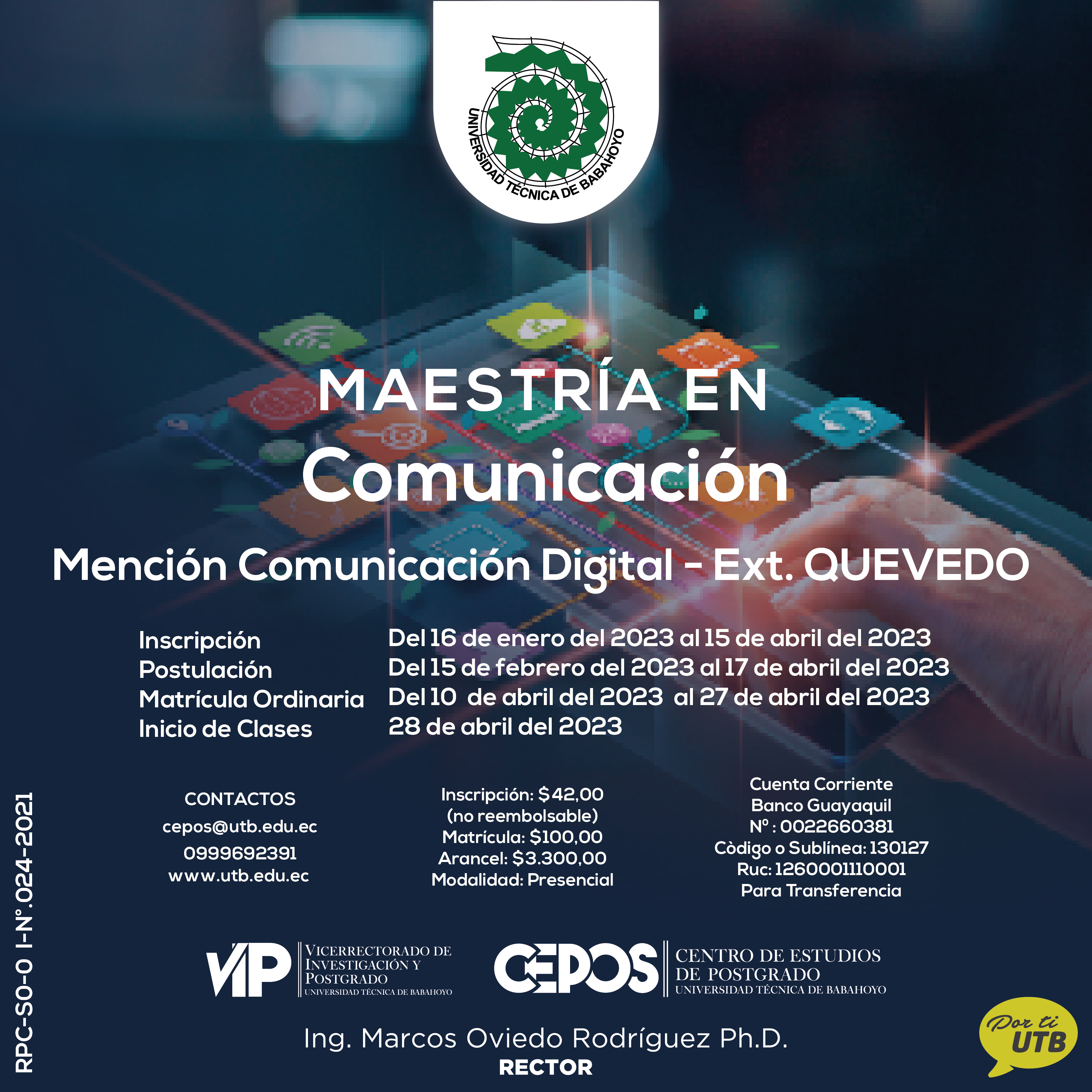 Maestria en Comunicación, Mención Comunicación Digital - Extensión Quevedo 2023