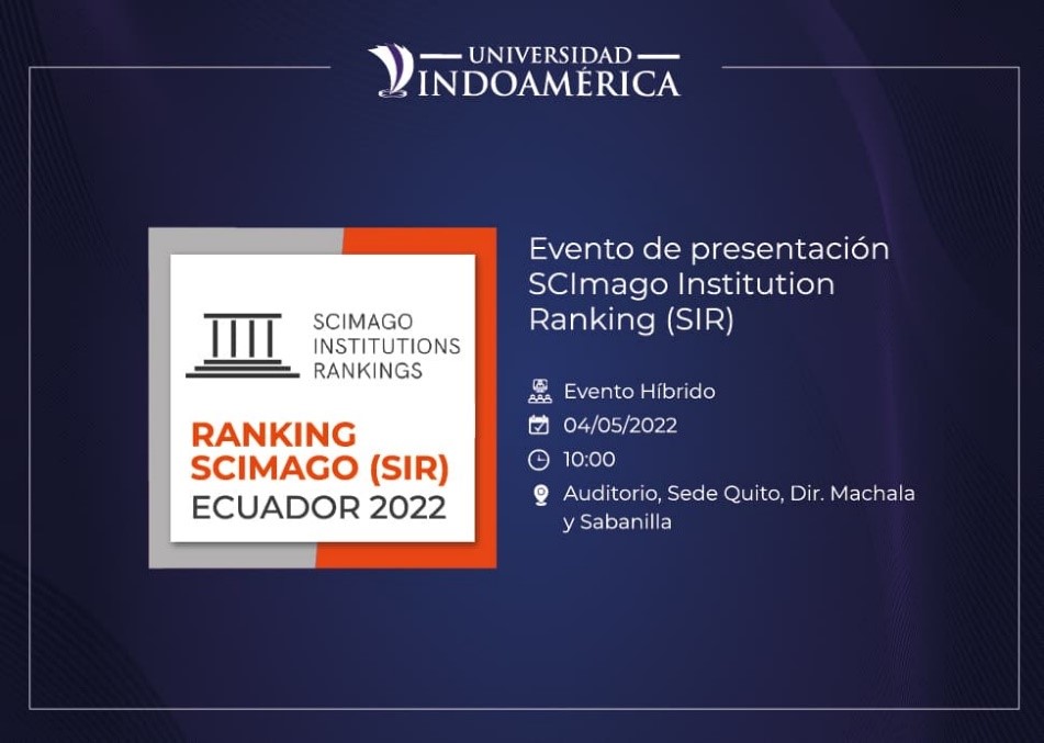 La comisión encabezada por la Vicerrectora de Investigación y Posgrado, participó en el evento de presentación de los resultados del último ranking mundial de instituciones de educación superior en sus actividades de investigación y producción científica, el 04 de mayo del 2022, en la Universidad Indoamericana, con los ponentes: Dr. Félix de Moya, Fundador del Grupo SCImago y el Dr. Gerardo Tibaná Consultor Senior. En el evento se trataron los siguientes temas: 1) Por qué es necesario el ranking de las IES, 2) Metodología del SCImago Institutions Ranking, 3) Resultados Globales, 4) La región y Ecuador en contexto, 5) Ranking por áreas y categorías temáticas, 6) Herramientas de Comparación y 7) Consideraciones finales. Encontrando que la UTB, se encuentra en el puesto 37 a nivel nacional y de 5438 a nivel mundial en productividad científica.